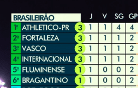 O Vasco está em terceiro lugar no momento.