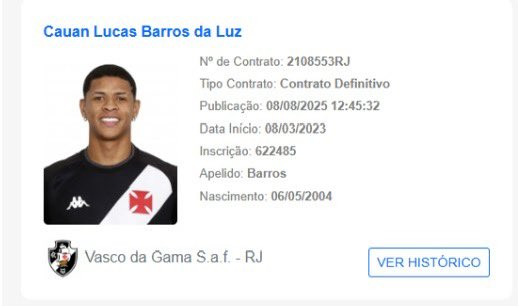 Além disso, o clube cruzmaltino confirmou a ampliação do vínculo do jogador, que agora se estende até dezembro de 2027.