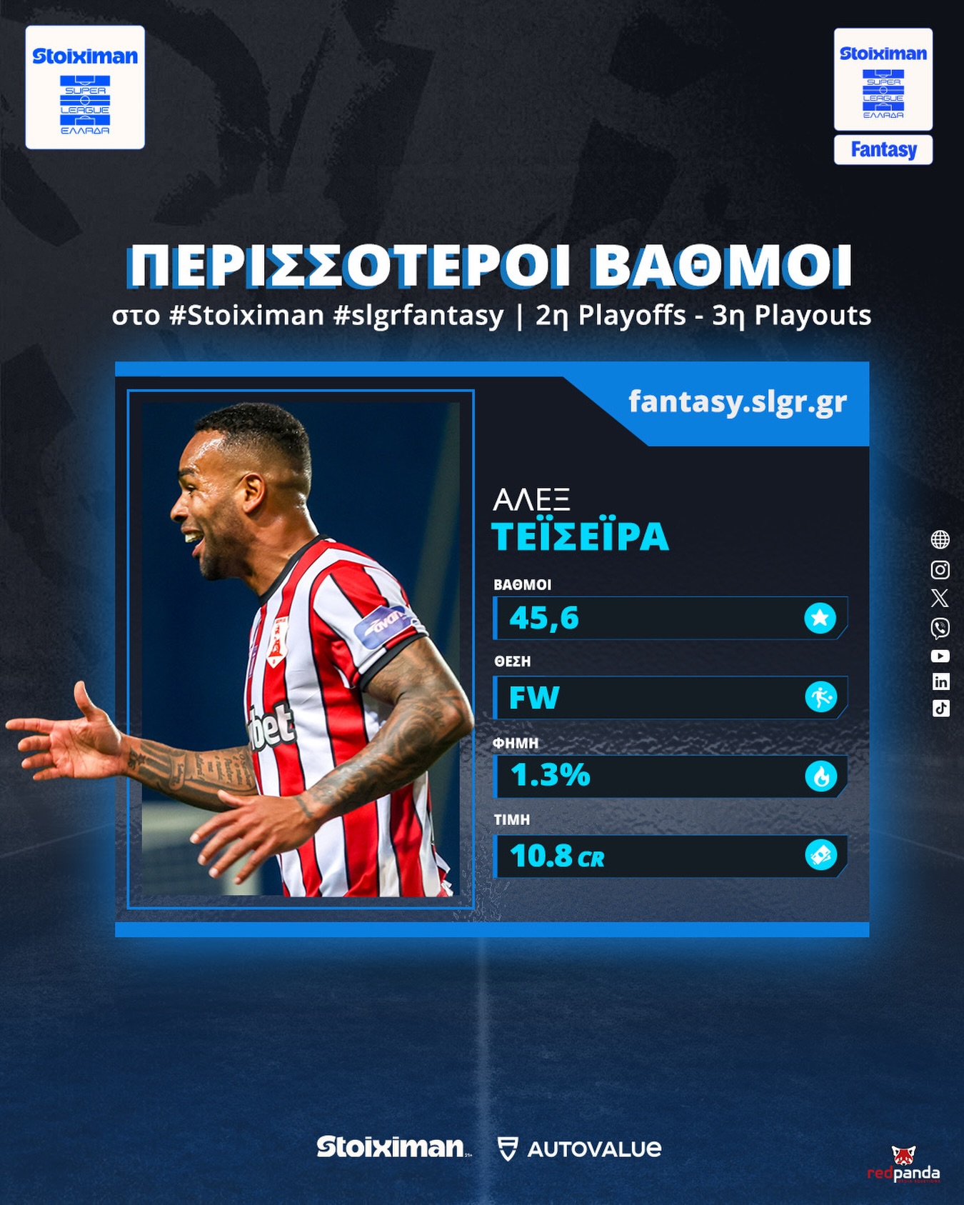 O jogador Alex Teixeira, do Panserraikos, se destacou na Super League Grécia, acumulando 45,6 pontos e sendo o melhor da rodada no fantasy.