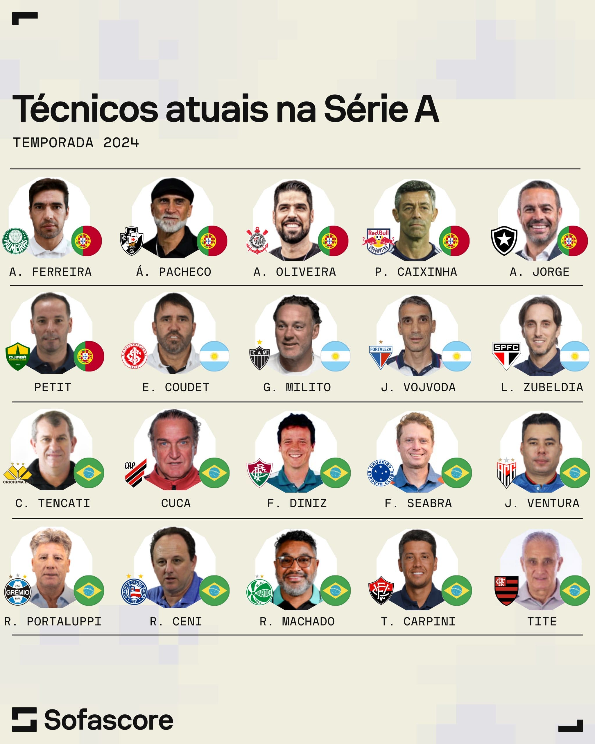 Agora, com a chegada de Álvaro Pacheco ao Vasco, a Série A conta com 10 técnicos estrangeiros, igualando-se ao número de técnicos brasileiros na competição! 📋