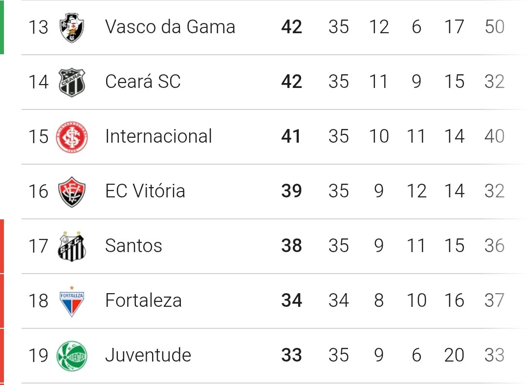 👻 Sequência dos times que ainda não alcançaram pelo menos 43 pontos no Brasileirão: