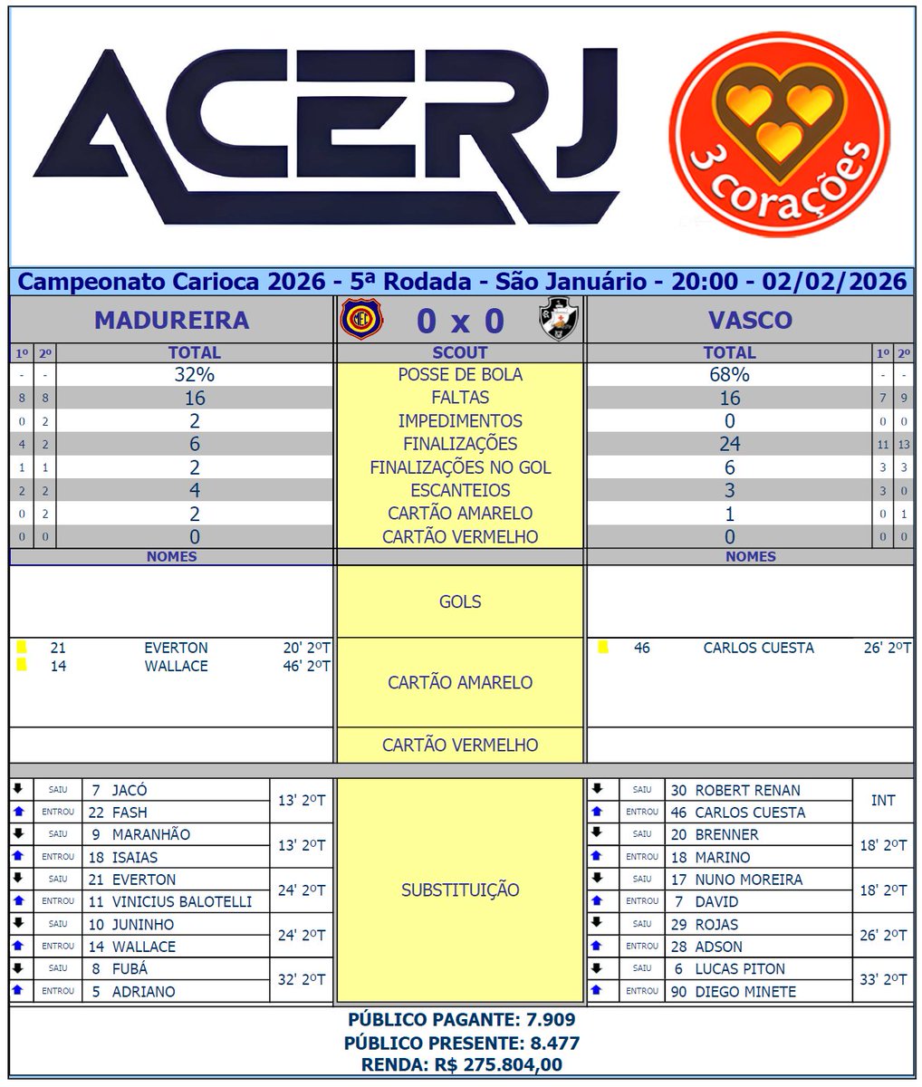 O empate sem gols entre Madureira e Vasco foi marcado por um jogo equilibrado, com destaque para a defesa de ambos os times.