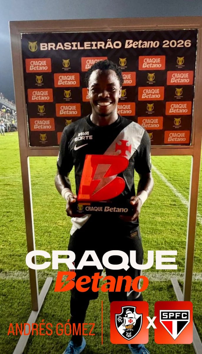 Andrés Gómez foi escolhido o melhor jogador da partida na vitória do Vasco, que derrotou o São Paulo por 2 a 1