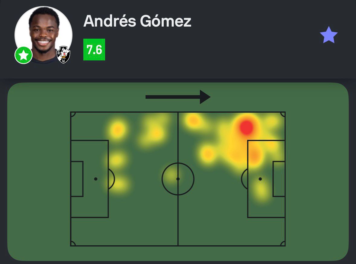 Andrés Gómez foi o destaque do Vasco na partida contra o São Paulo, que terminou com o placar de 2 a 1.