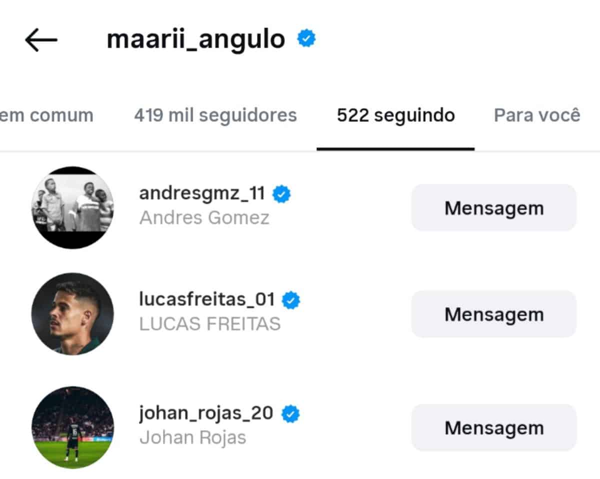 Andrés Goméz, Lucas Freitas e Johan Rojas, atletas do Vasco, estão sendo acompanhados por Hinestroza nas redes sociais.