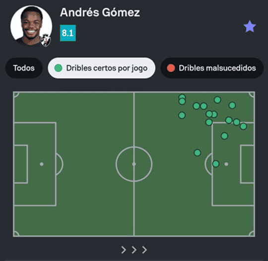 O atleta registrou 7 finalizações, sendo 2 delas no gol, e contribuiu com 3 passes decisivos, o que o tornou o melhor da partida. Além disso, acertou 4 dos 10 cruzamentos que tentou e venceu 19 dos 32 duelos em que participou. Gómez também teve 16 dribles certos, o que o colocou como o melhor nesse aspecto do jogo. Sua performance foi avaliada com uma nota de 8.1 pelo Sofascore.