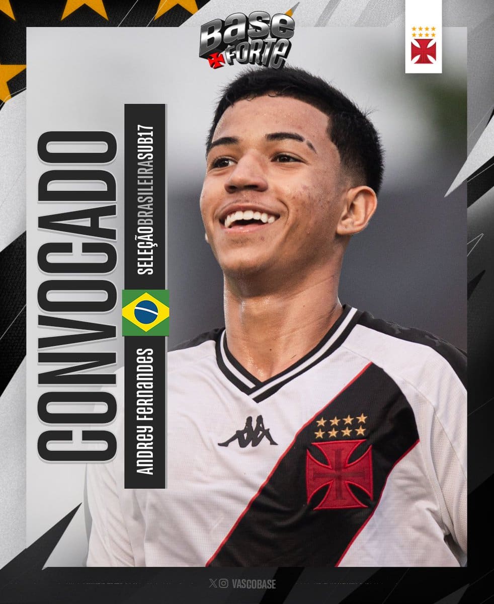 O meio-campista Andrey Fernandes foi chamado para representar a Seleção Brasileira Sub-17 em dois amistosos contra o México, que ocorrerão no final de junho, na Granja Comary, em Teresópolis.