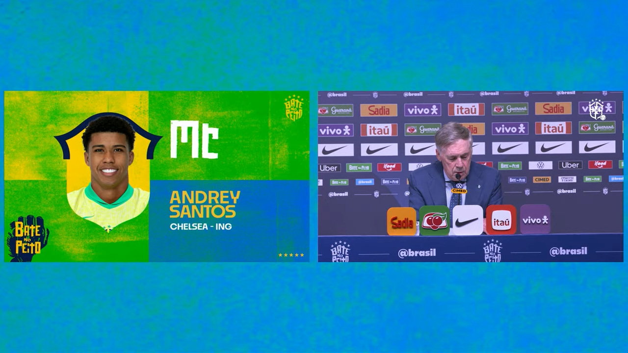 Andrey Santos e Rayan, revelados pelo Vasco, foram convocados por Ancelotti para amistosos da Seleção.