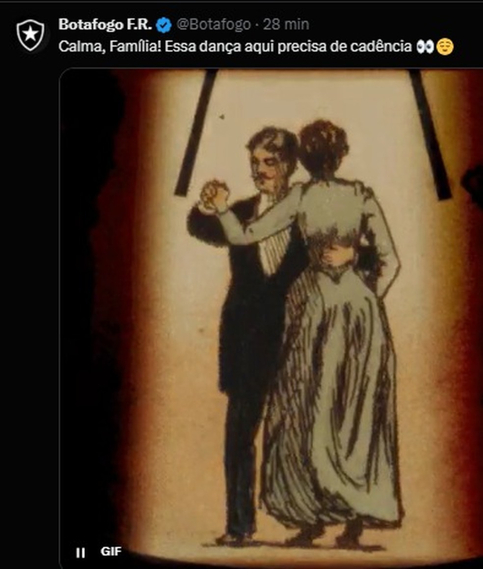 Em resposta, o Botafogo exibiu uma imagem de um casal dançando uma valsa, seguida de uma mensagem provocativa: “Com vocês, um clássico das festas de 15 anos”.