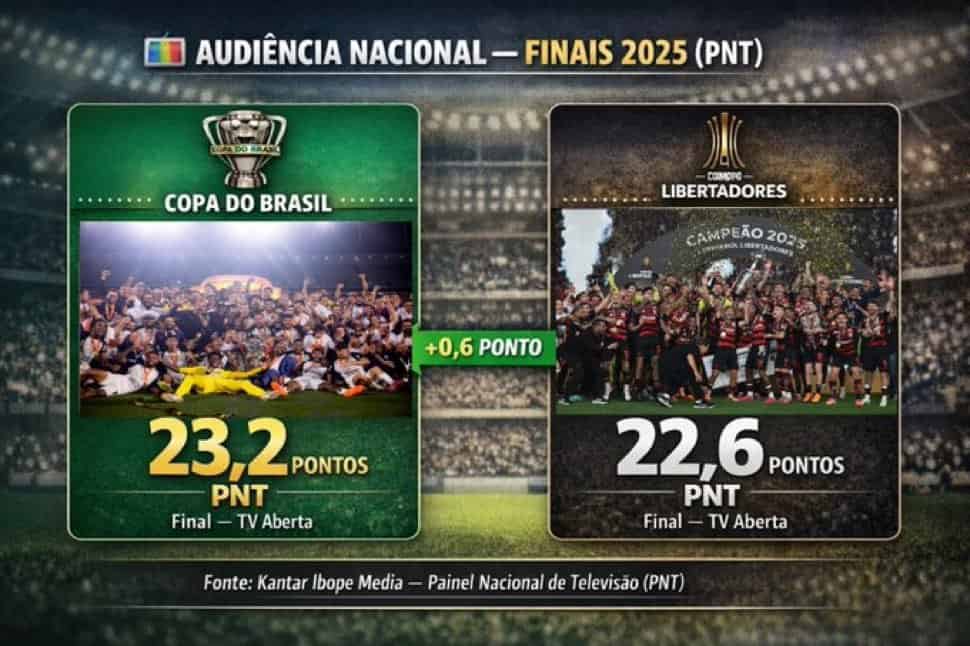 A final da Copa do Brasil alcançou uma audiência maior do que a da final da Libertadores em todo o Brasil.