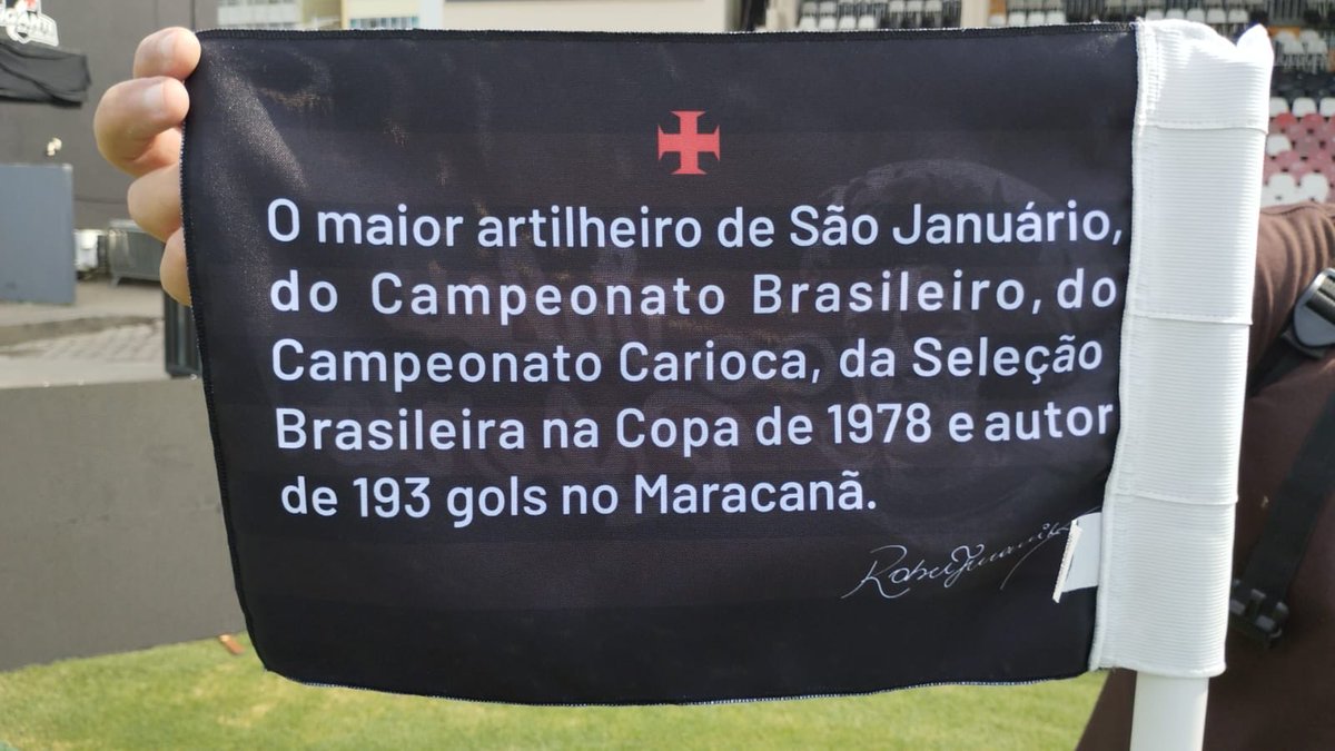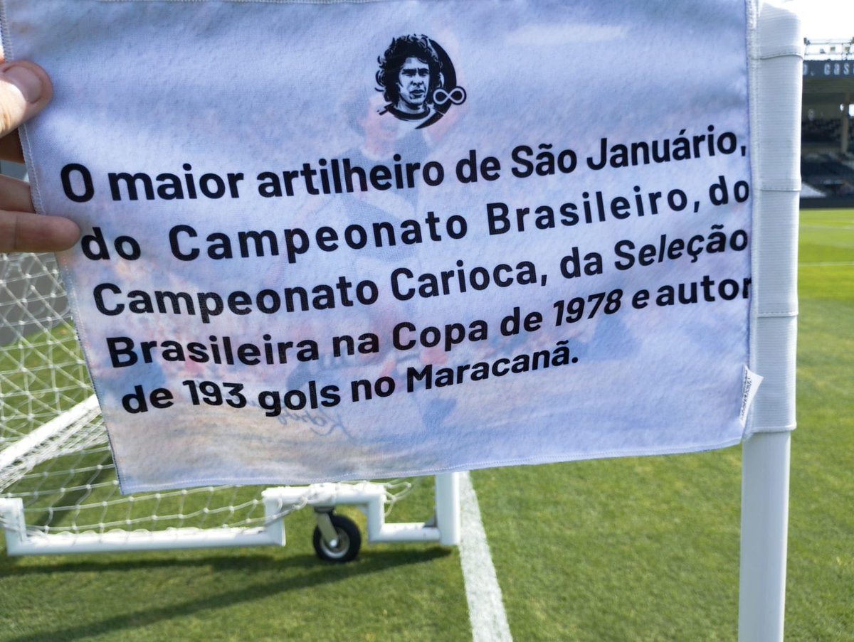 Entre as homenagens, as bandeiras de escanteio foram personalizadas com referências ao maior jogador da história vascaína, simbolizando seu legado tanto dentro quanto fora de campo.