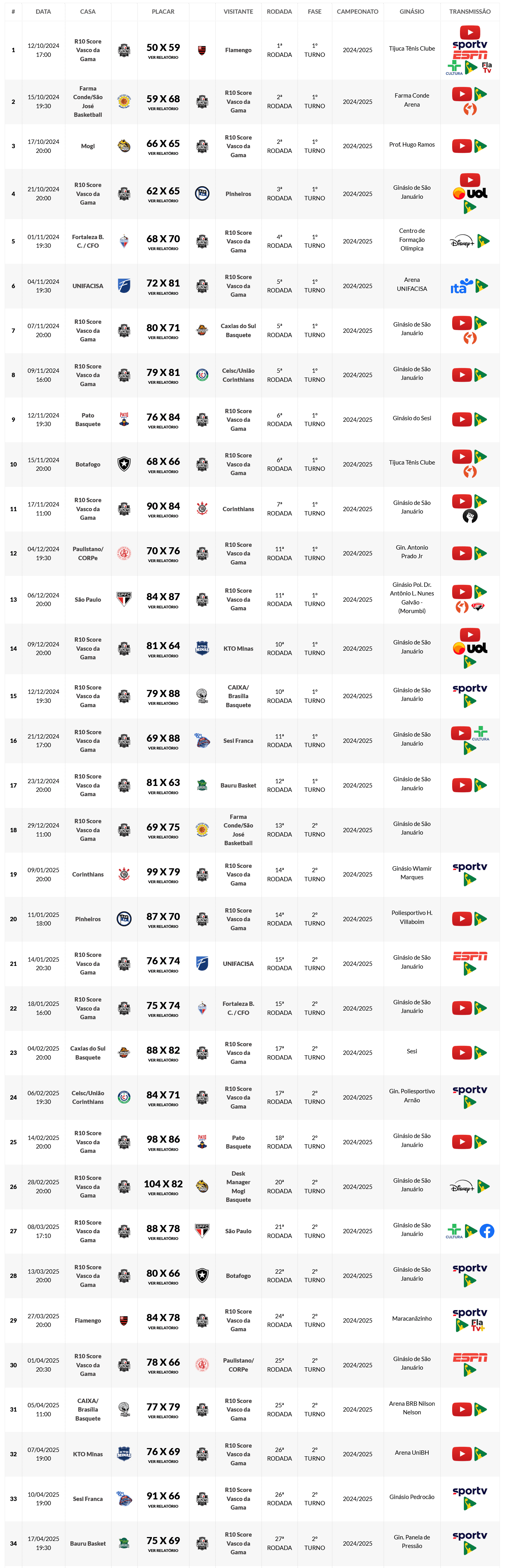 MeuVasco›Basquete›Basquete: Confira a trajetória do Vasco e a classificação final… Basquete: Confira a trajetória do Vasco e a classificação final da temporada regular do NBB segunda-feira, 21/04/2025 às 18:53 • Deixe um comentário O Vasco finalizou a fase regular do NBB na 8ª posição, conquistando 18 vitórias em 34 partidas, e agora enfrentará o Bauru nos playoffs. Fonte: NETVASCO (texto), LNB (resultados, classificação), Instagram NBB (playoffs) Receba notícias do Vasco Cadastre seu e-mail para receber os principais destaques do Vasco. Seu e-mail Quero receber Você pode cancelar a inscrição quando quiser. Tags #Basquete #campanha #financiamento #Meuvasco #Notícias #Vasco