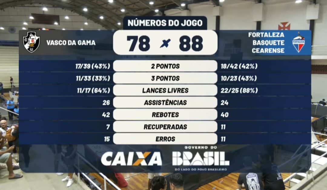 Basquete: Confira as estatísticas do jogo entre Vasco e Fortaleza.