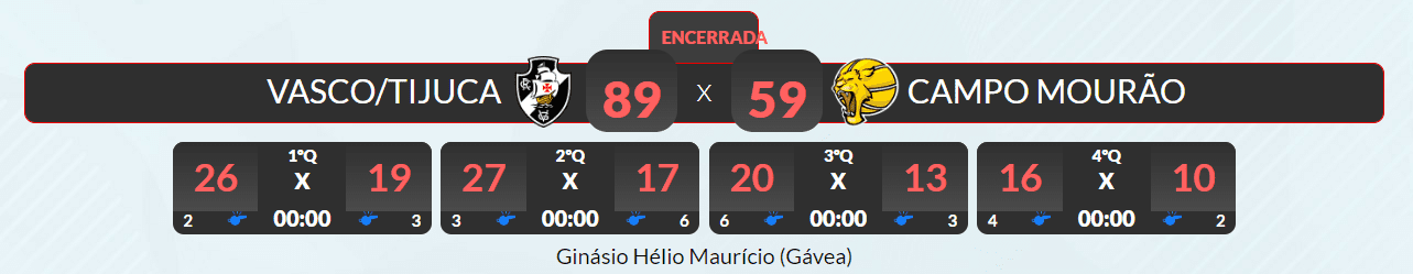 O Vasco venceu o Campo Mourão por 89 a 59, em partida válida pela LDB Sub-22.