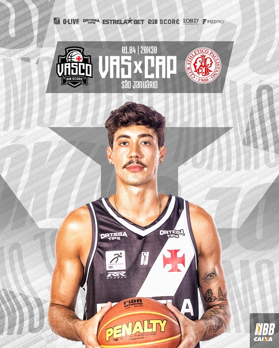 🏀 Último embate em casa na fase regular! Nesta terça-feira, 01/04, às 20h30, o R10 Score Vasco enfrentará o Paulistano em São Januário. Este será nosso último compromisso caseiro antes dos playoffs, e sua presença é essencial para impulsionar o #GiganteDoBasquete rumo ao triunfo! ⚫⚪