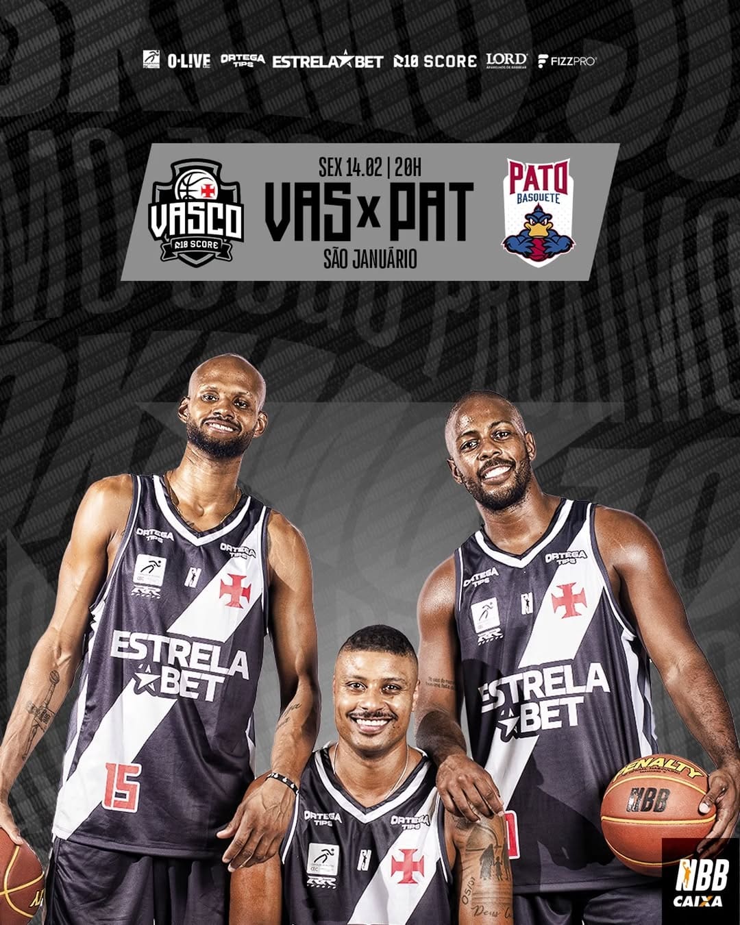 🏀 Mais um grande desafio se aproxima! Nesta sexta-feira, 14/02, o R10 Score Vasco enfrenta o Pato Basquete, às 20h, no lendário São Januário. É hora de mostrar a força da nossa torcida em casa! ⚫⚪