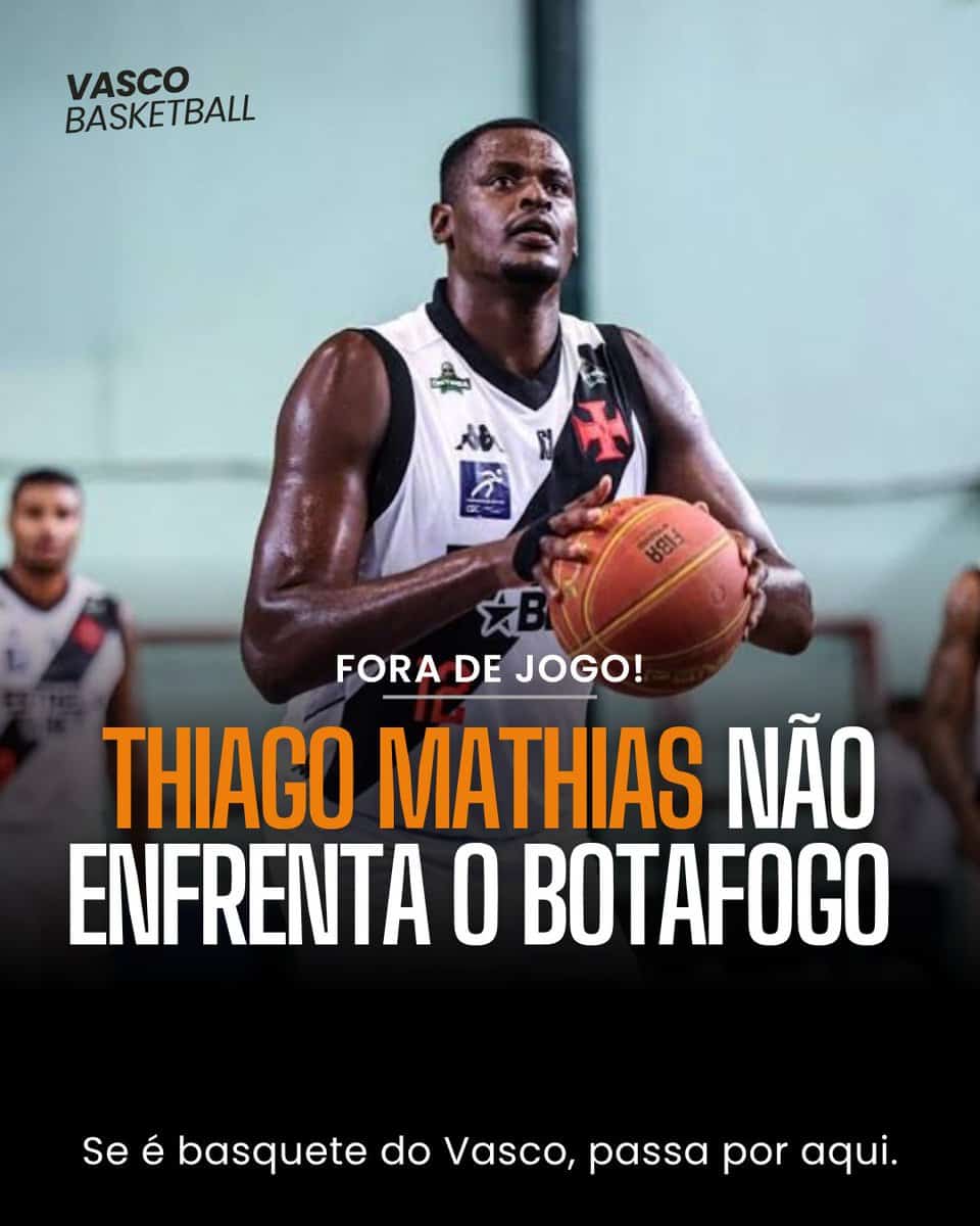 Thiago Mathias não irá participar do clássico contra o Botafogo nesta quarta-feira. O Vasco ainda não conseguiu regularizar o pivô, que não poderá enfrentar seu antigo clube no NBB.
