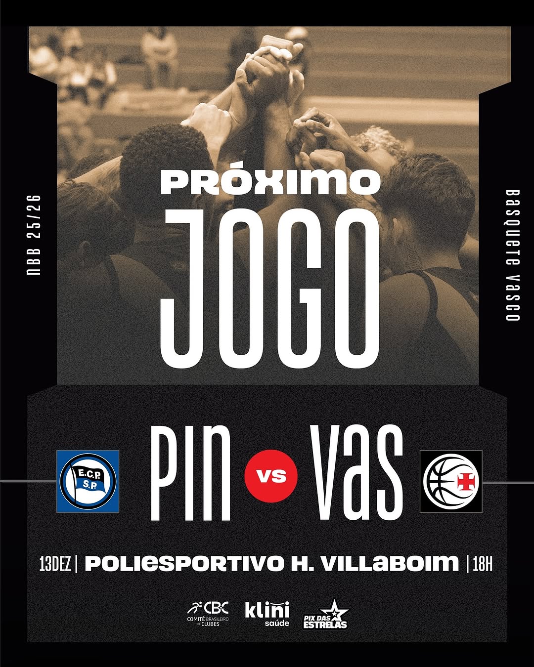 A torcida vascaína de São Paulo e região, vamos juntos apoiar o #GiganteDoBasquete! ⚫️⚪️