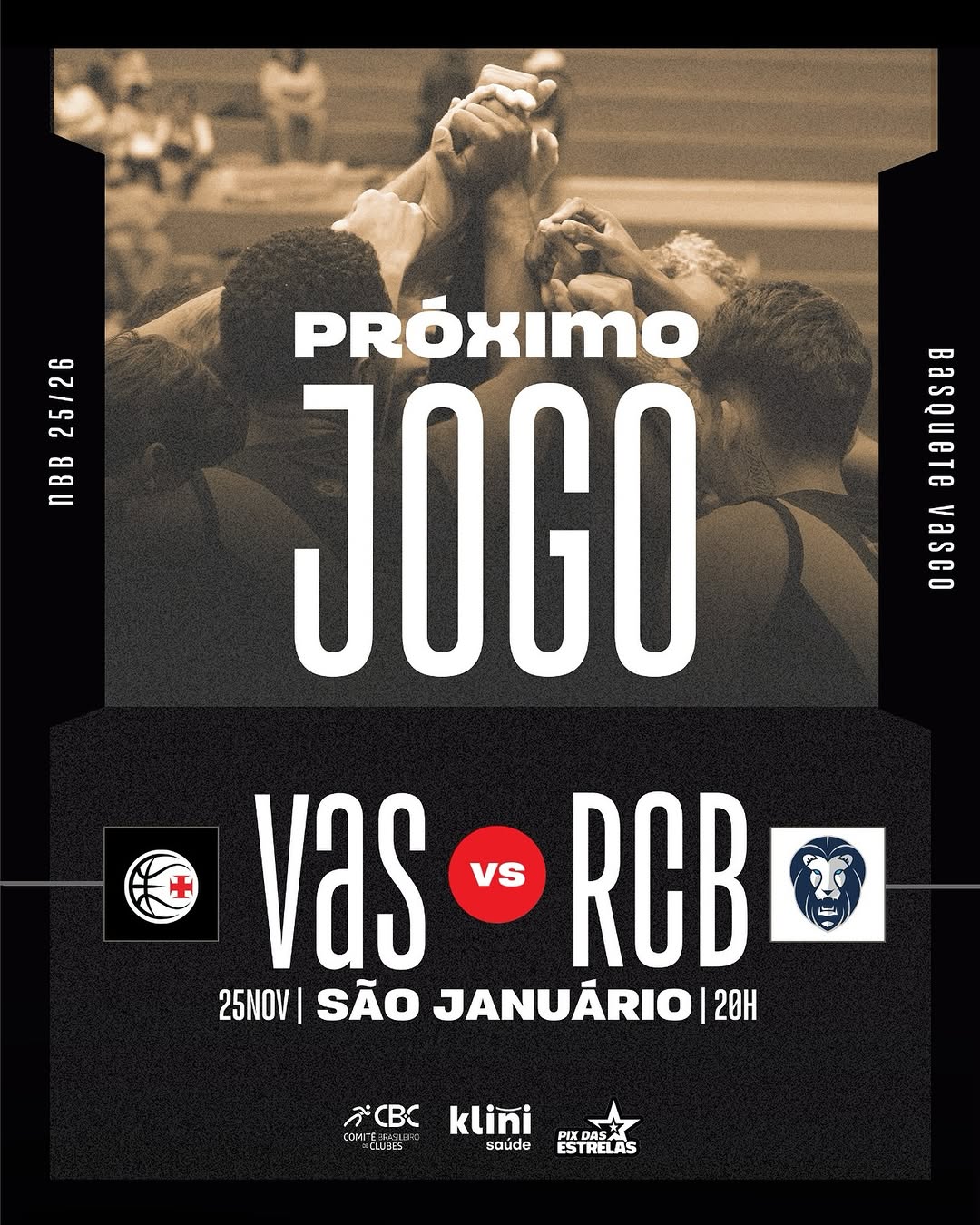 AMANHÃ, o Vasco da Gama enfrentará o Rio Claro, às 20h, em São Januário! 💢🏀