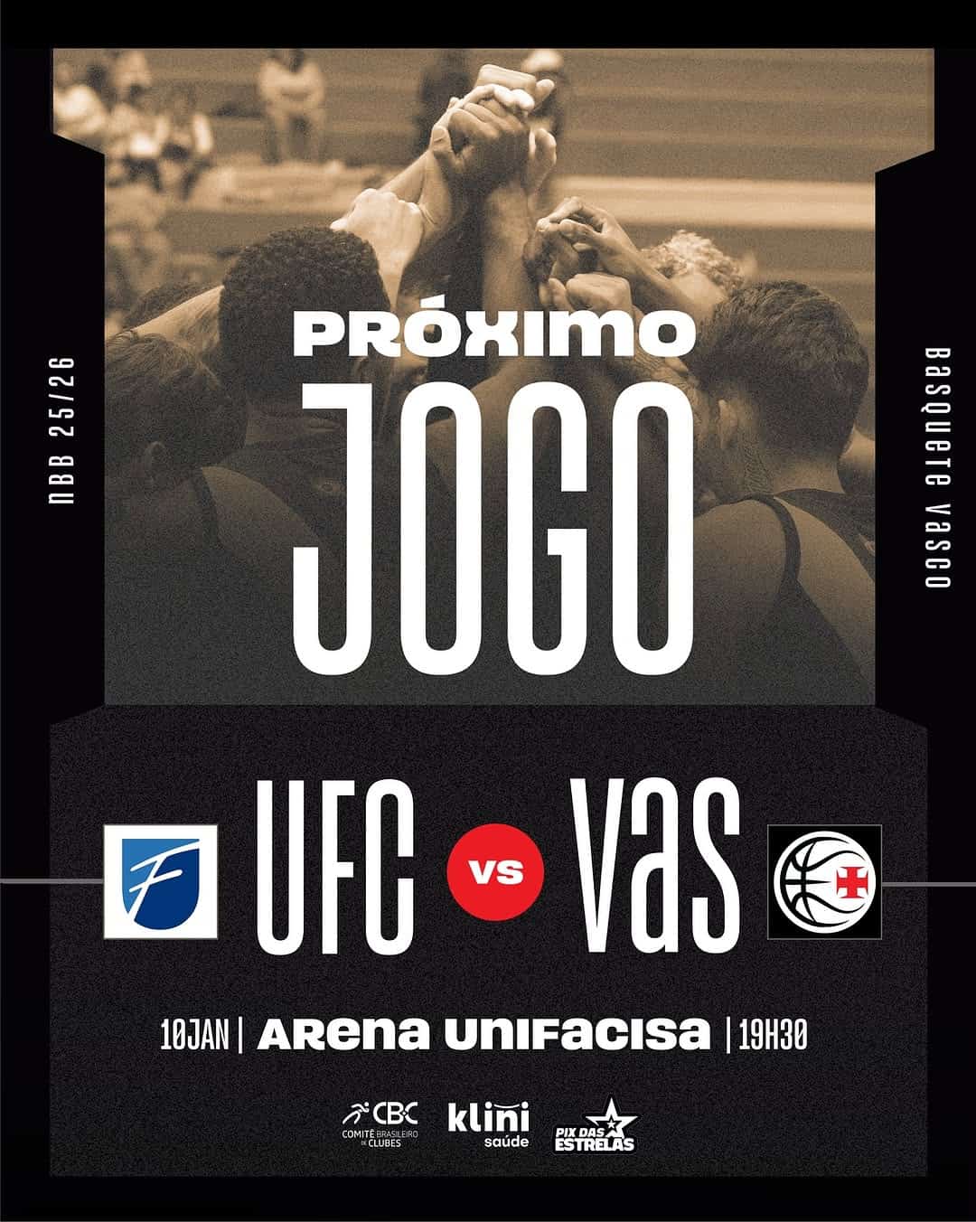 O ano de 2026 já começa com ação para o Vasco da Gama no basquete. Nesta quarta-feira, a equipe enfrentará a Unifacisa, em uma partida marcada para as 19h30 na Arena Unifacisa. O confronto promete agitar os torcedores vascaínos de Campina Grande e das redondezas, em mais uma emocionante noite do #GiganteDoBasquete.