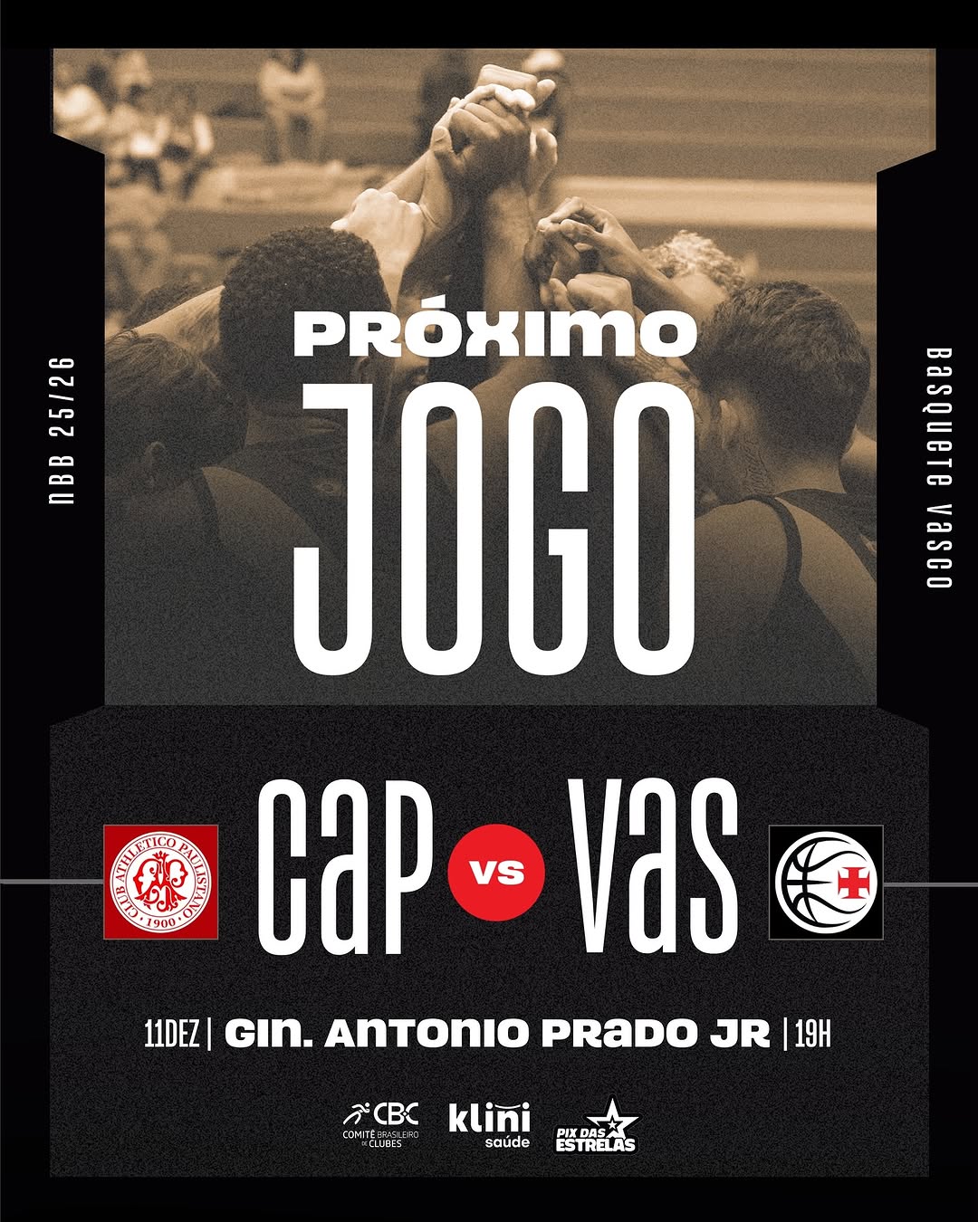 Vasco da Gama, torcedores de São Paulo e região, venham prestar apoio ao #GiganteDoBasquete!