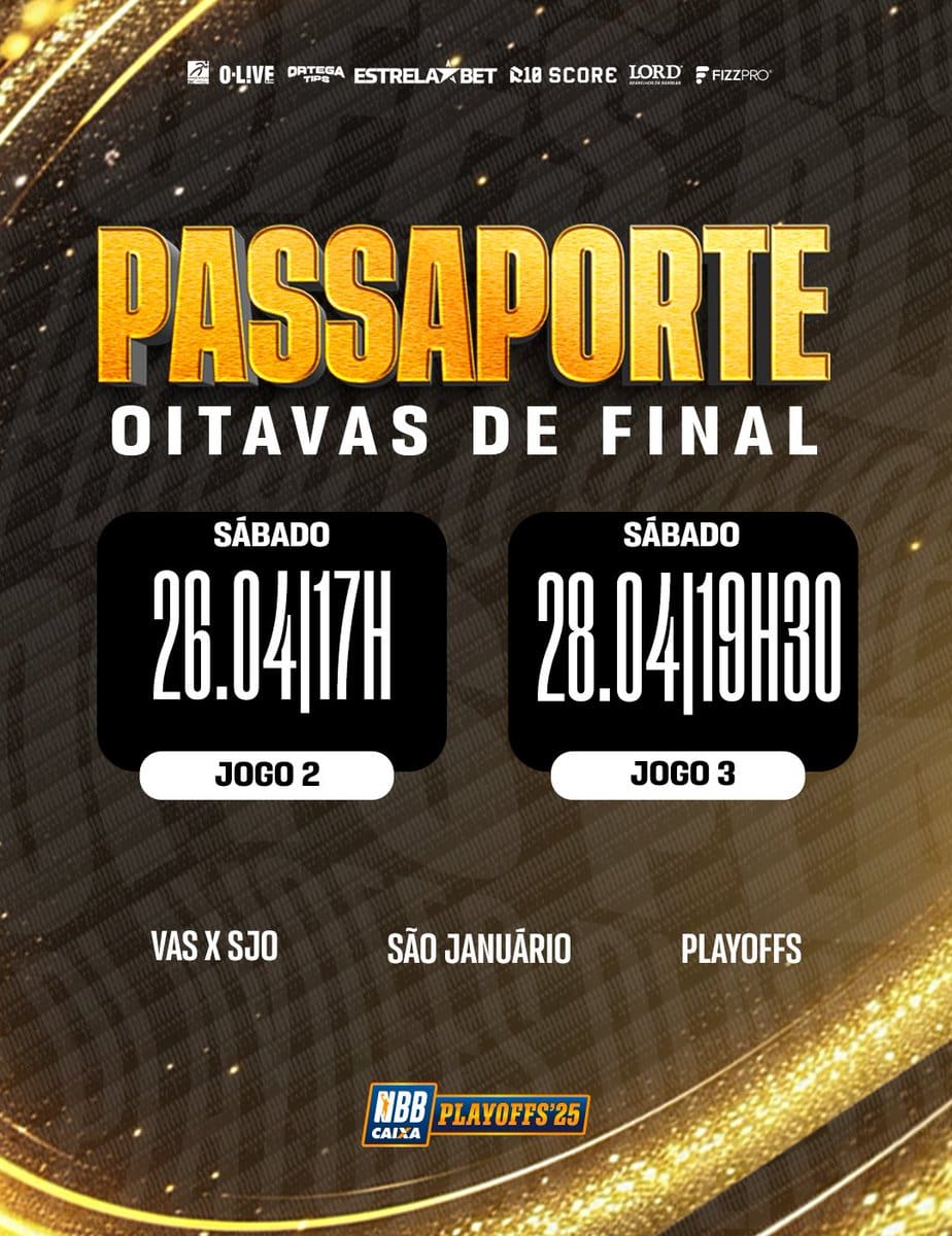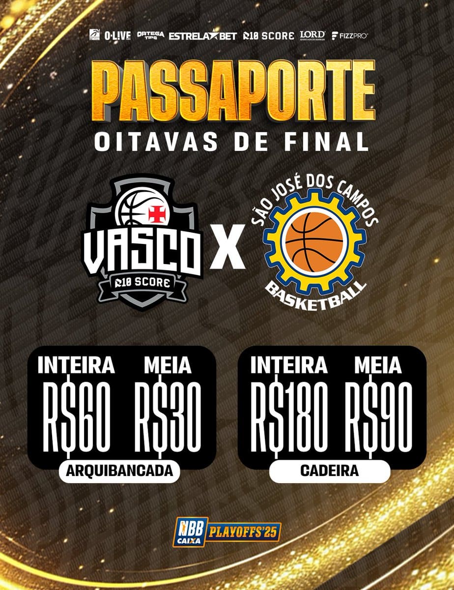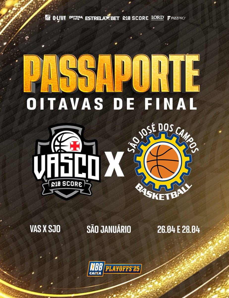 Os PLAYOFFS DO NBB CAIXA já começaram e o R10 Score Vasco precisa de você para fazer o CALDEIRÃO ferver! O #GiganteDoBasquete vai enfrentar o São José nas oitavas de final, e os jogos 2 e 3 acontecerão em São Januário, nos dias 26 (às 17h) e 28 de abril (às 19h30)! +