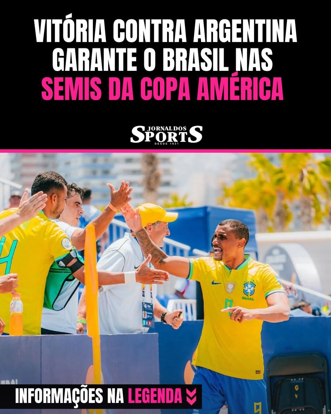 A nossa Seleção Brasileira despachou a Argentina com uma vitória de 6 a 2 na última quinta-feira da @copaamerica, garantindo seu lugar na semifinal do torneio como o segundo colocado do grupo B. 👏👏👏