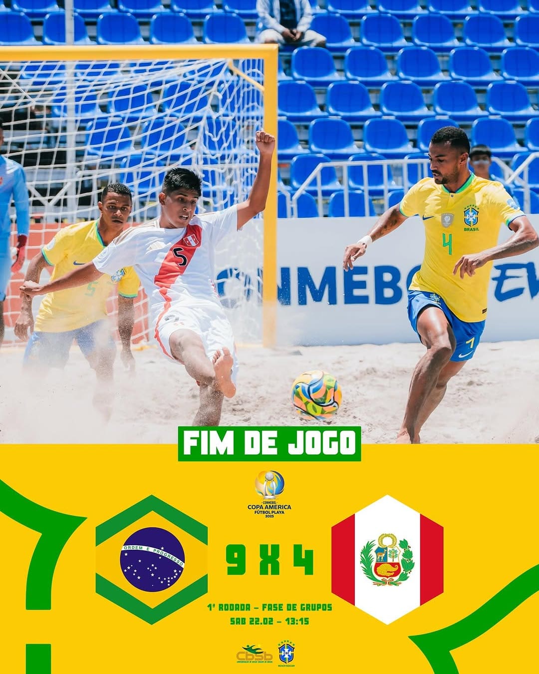 A Seleção Brasileira conquistou uma vitória contundente sobre o Peru, marcando 9 a 4 neste sábado (22), em sua primeira partida na @copaamerica, que está rolando em Iquique, no Chile.