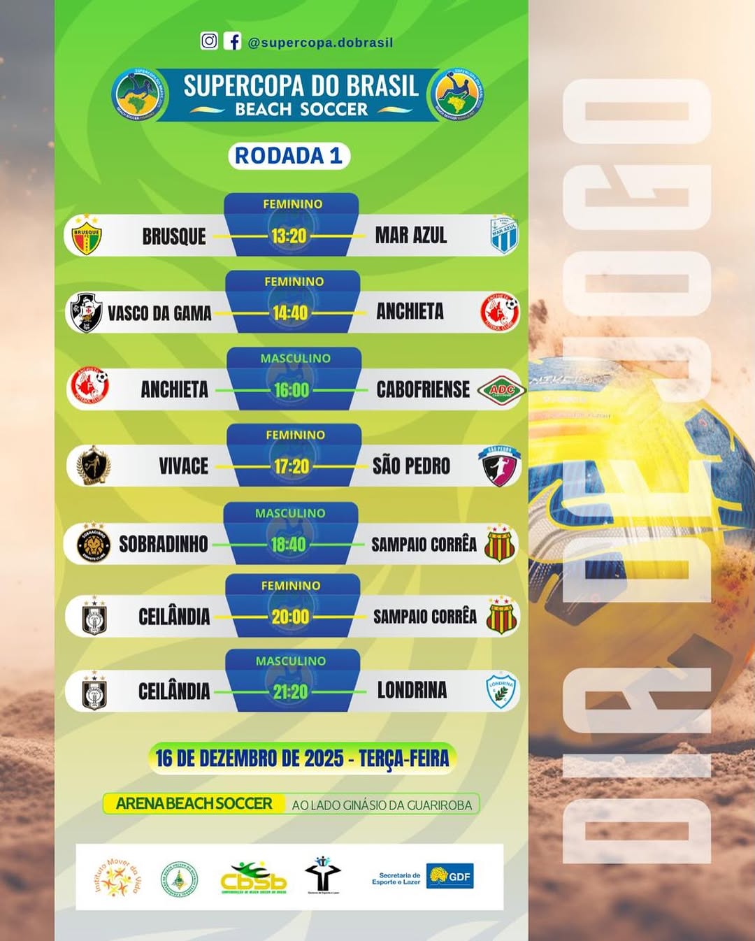 #SupercopaDoBrasil #BeachSoccer #Rodada1 #FutebolDeAreia #Ceilândia #ArenaBeachSoccer