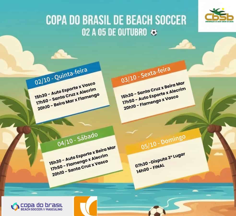 O jogo inaugural será entre o time da casa, Auto Esporte, e o Vasco, programado para as 15h30 na arena do Paraíba World Beach Games. Em seguida, Santa Cruz enfrenta Alecrim, e o Flamengo jogará contra o Beira-Mar.