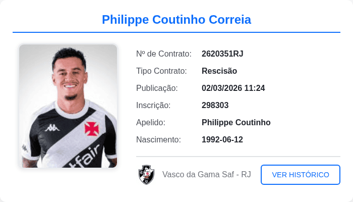 Philippe Coutinho teve sua rescisão contratual oficializada no BID.