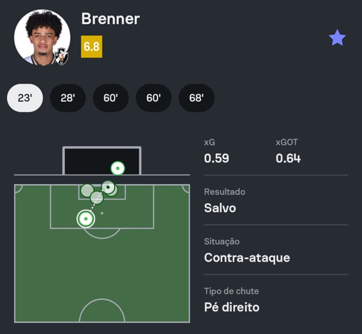 Sofascore Brasil destacou que, na partida Vasco 1-1 Chapecoense, Brenner igualou o recorde de cinco grandes chances perdidas em um jogo do Campeonato Brasileiro, conforme os dados disponíveis desde 2016.