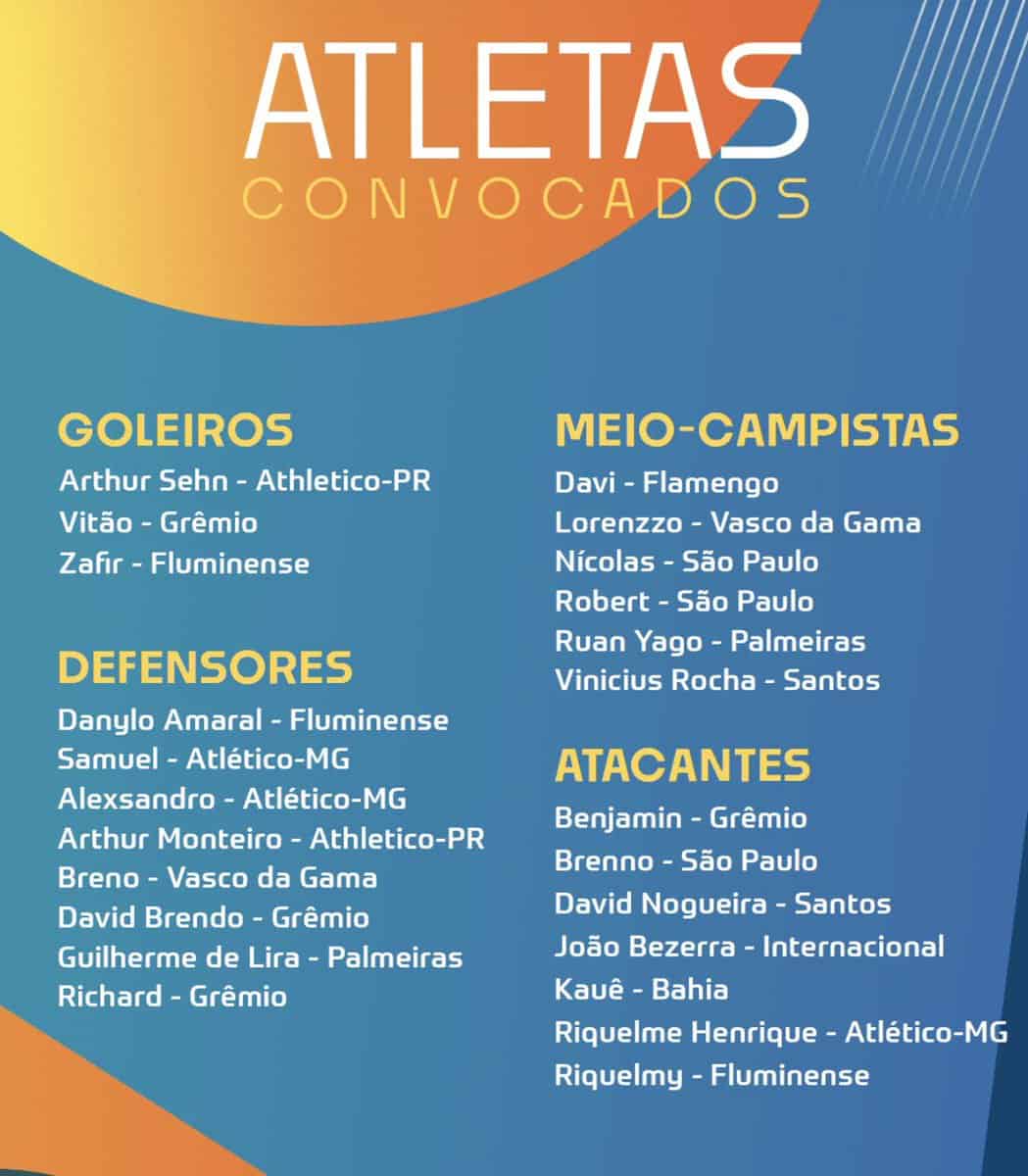 O zagueiro Breno Sales e o lateral-esquerdo Lorenzzo foram oficialmente convocados para a Seleção Brasileira Sub-17. Eles participarão de amistosos contra o Paraguai nos dias 8 e 11 de dezembro, como parte da preparação para o Sul-Americano que ocorrerá em abril de 2026.