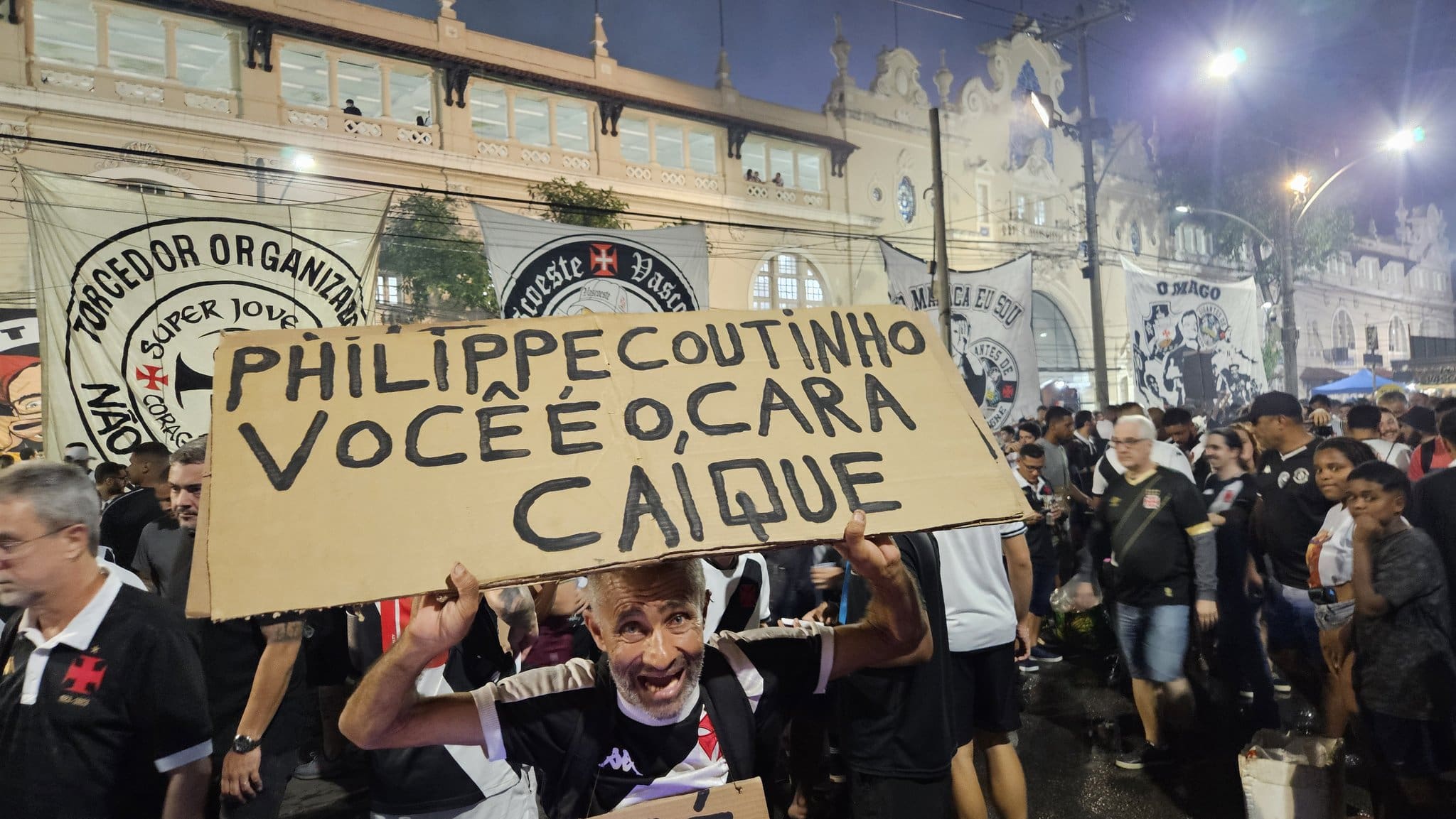 A placa dedicada por Caíque a Philippe Coutinho não poderia ficar de fora da galeria de São Januário. crédito da imagem: reprodução/x/gabriel rodrigues