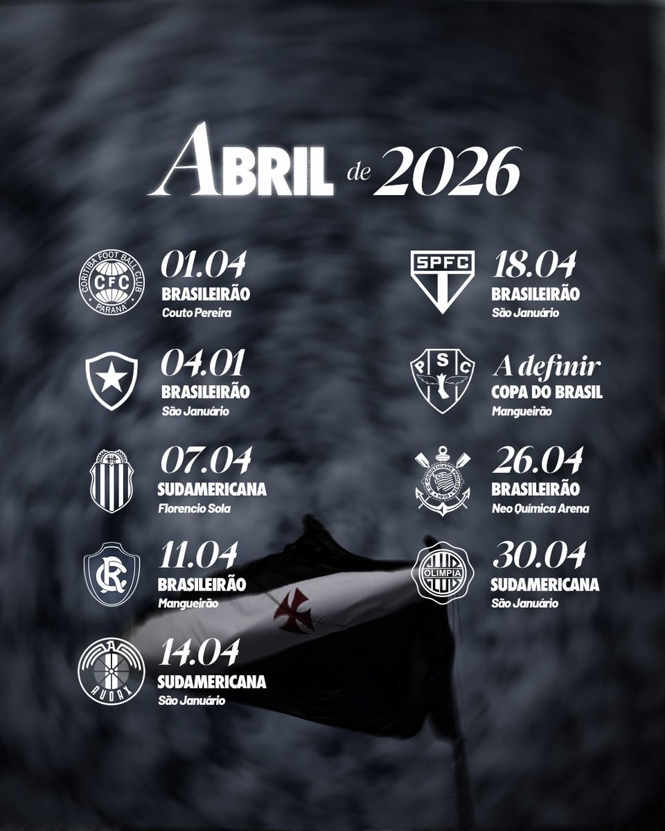 O Vasco divulgou seu calendário de jogos para o mês de abril.