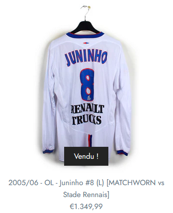 O principal site francês dedicado à comercialização de camisas de jogos usadas acaba de realizar a venda de uma camisa do Juninho por € 1.350 (cerca de R$ 8.500).