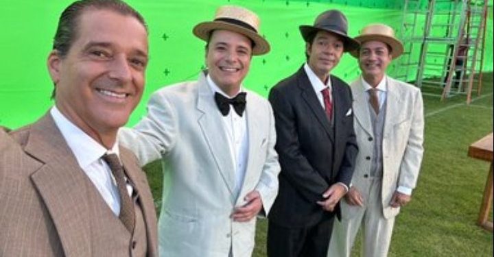 Diretor Jeferson Mello entre os atores Bruno Mazzeo, Rodrigo Candelot; Thelmo Fernandes no canto superior direito – Foto: Reprodução Instagram