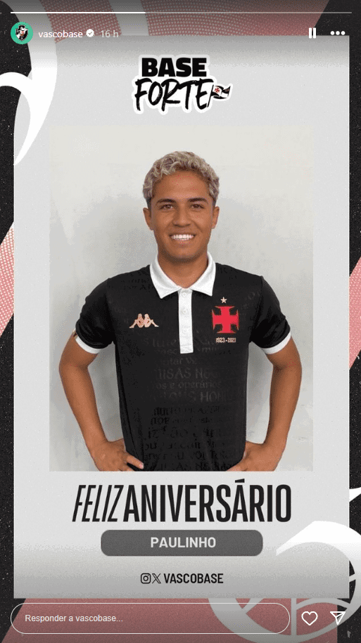 O jogador Paulinho celebra o seu 19º aniversário nesta quinta-feira (23). O clube Vasco da Gama fez questão de parabenizá-lo publicamente nas redes sociais.