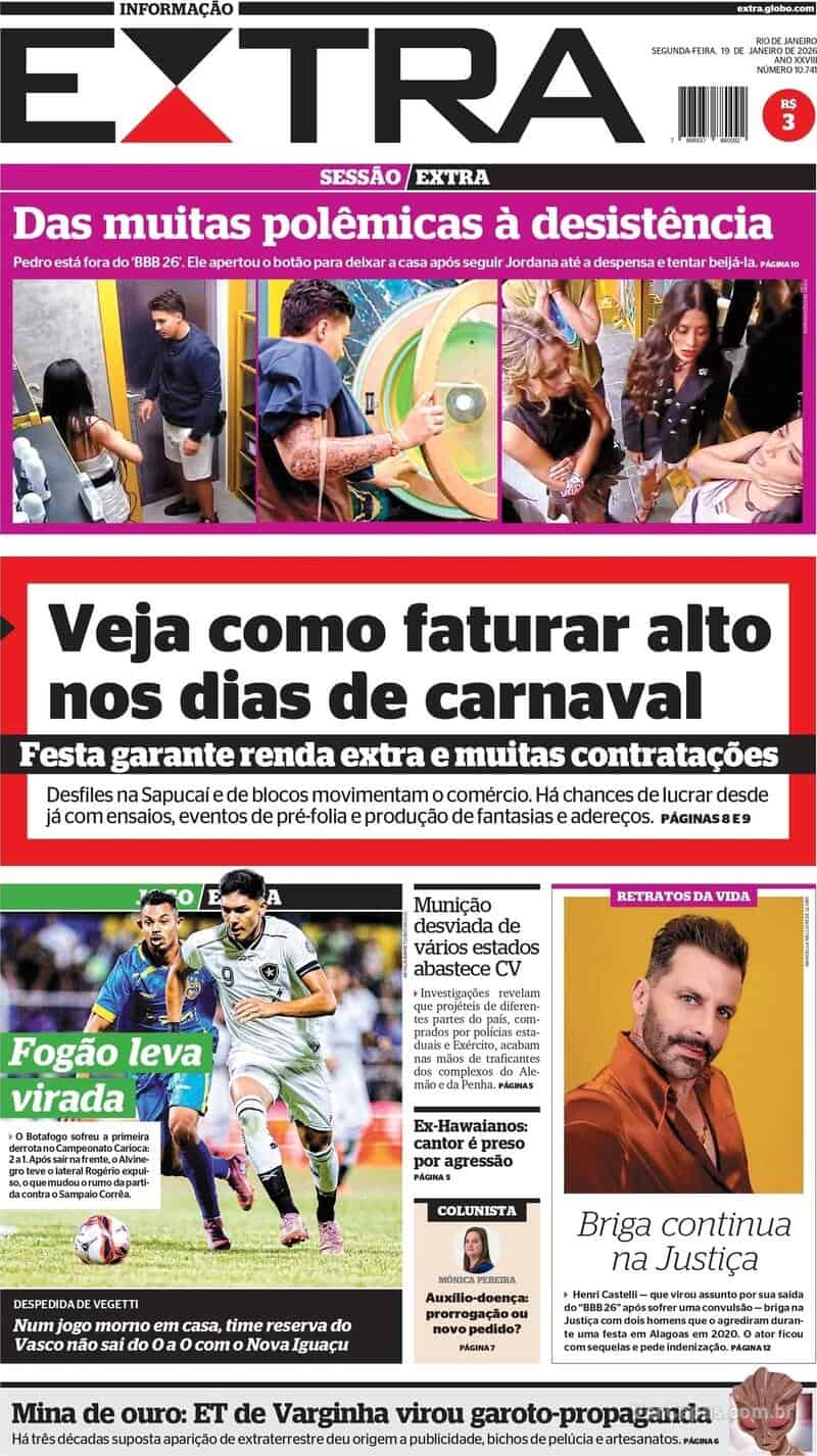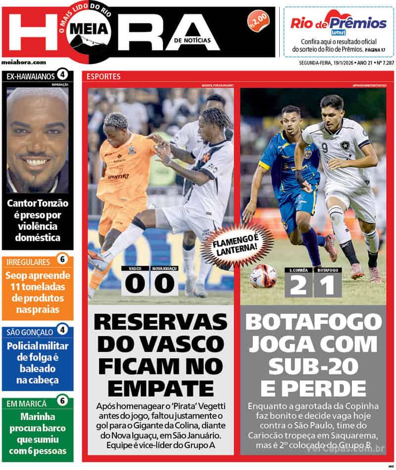 Pelo Campeonato Carioca, o Vasco, com uma formação alternativa, empatou em 0 a 0 com o Nova Iguaçu em São Januário. O jogo foi marcado pelas estreias dos reforços Alan Saldivia e Johan Rojas. Confira as capas dos jornais.