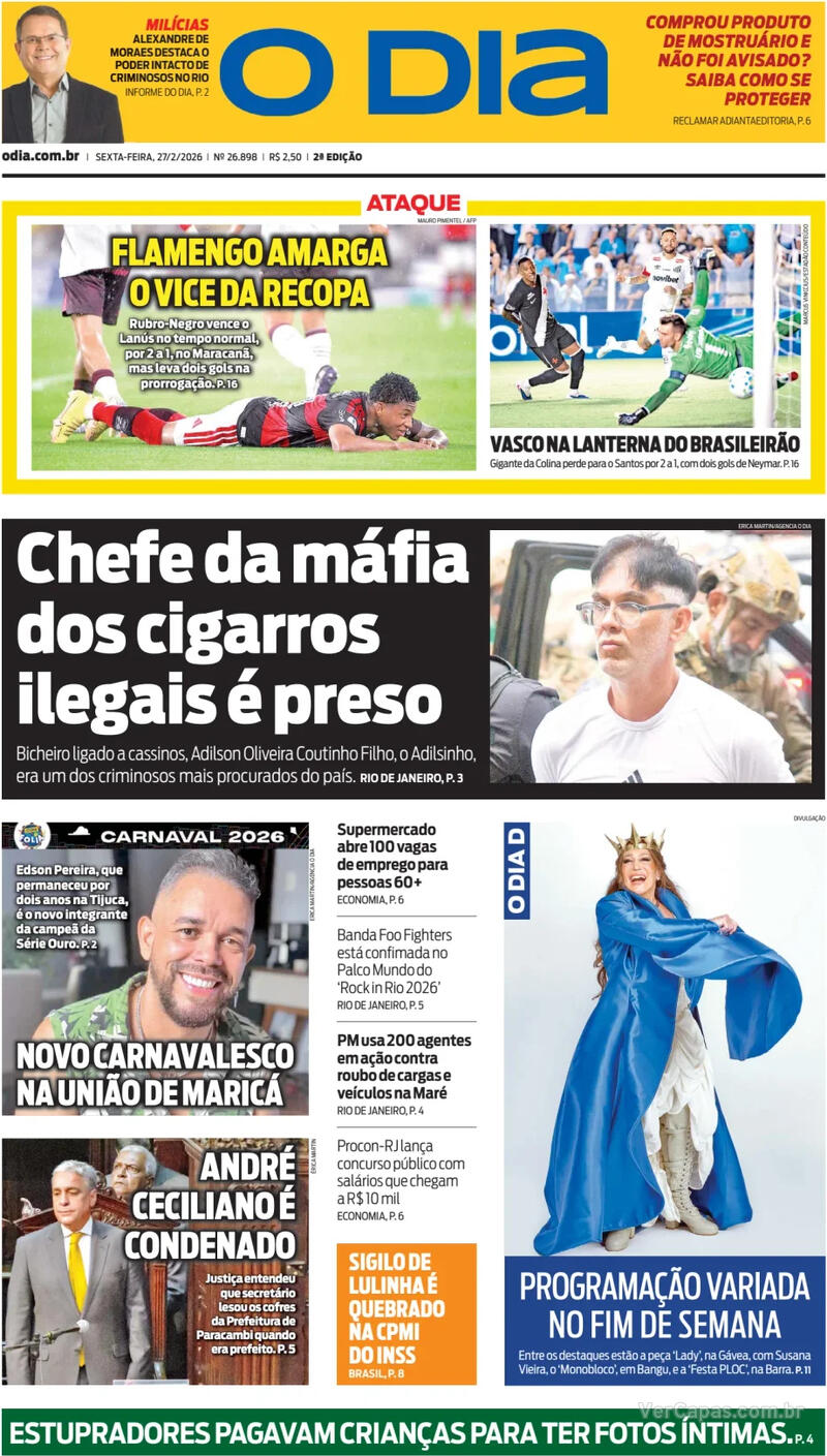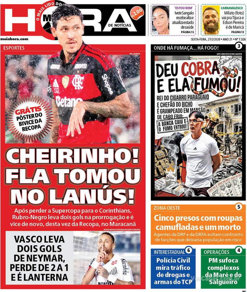 Santos vence o Vasco por 2 a 1, segundo capas dos jornais.
