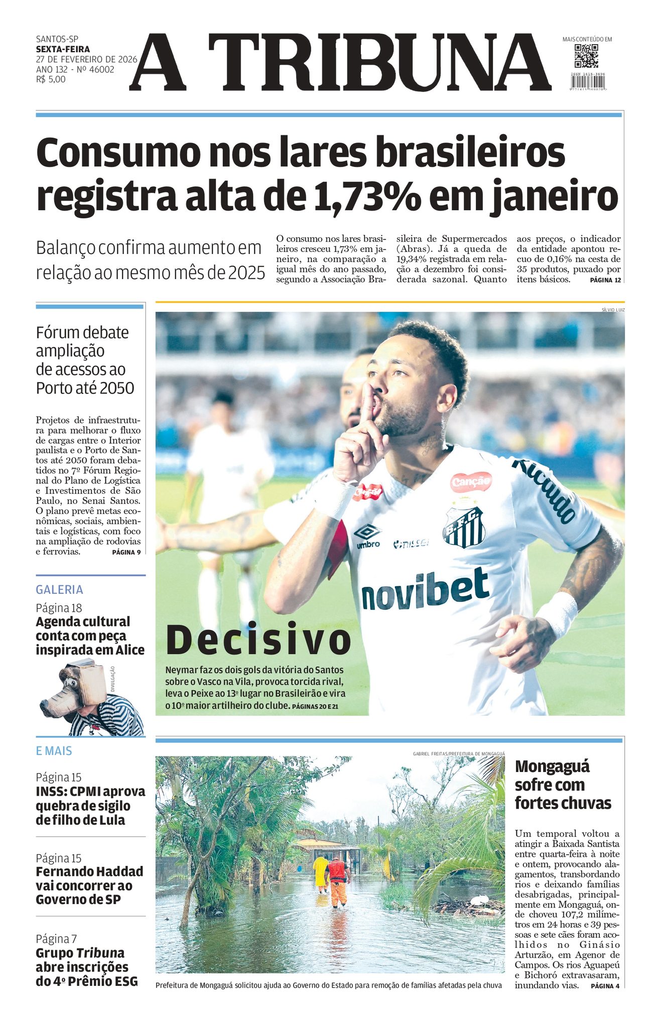 Capas dos jornais destacam vitória do Santos sobre o Vasco por 2 a 1