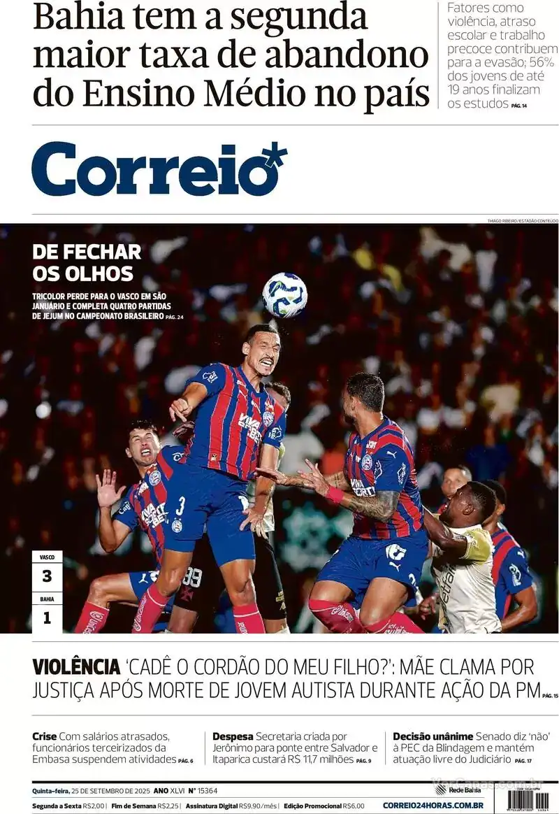 Pelo Campeonato Brasileiro, o Vasco conquistou uma vitória importante ao derrotar o Bahia por 3 a 1 em São Januário. Confira as capas dos jornais relacionados ao jogo.