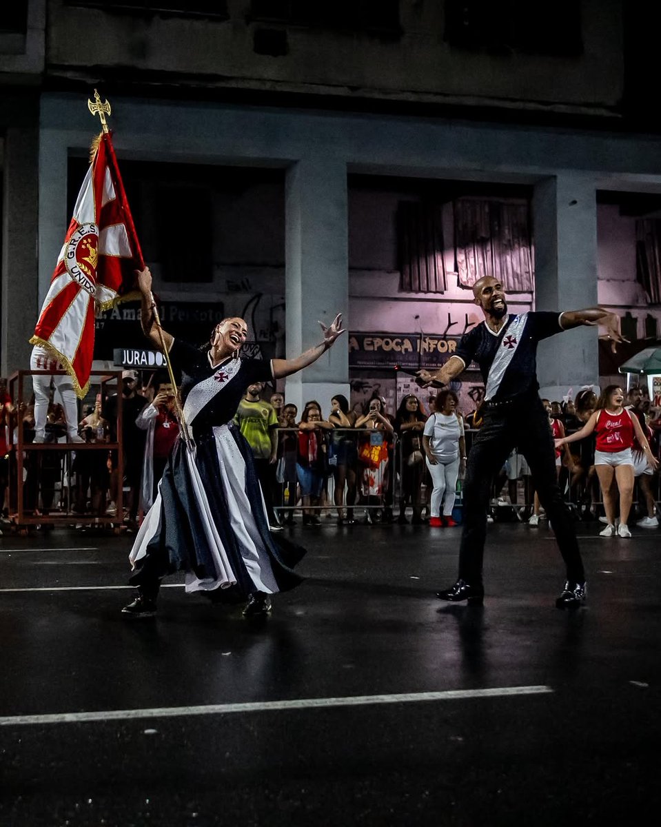 Casal da Viradouro participa de ensaio vestindo camisa do Vasco.