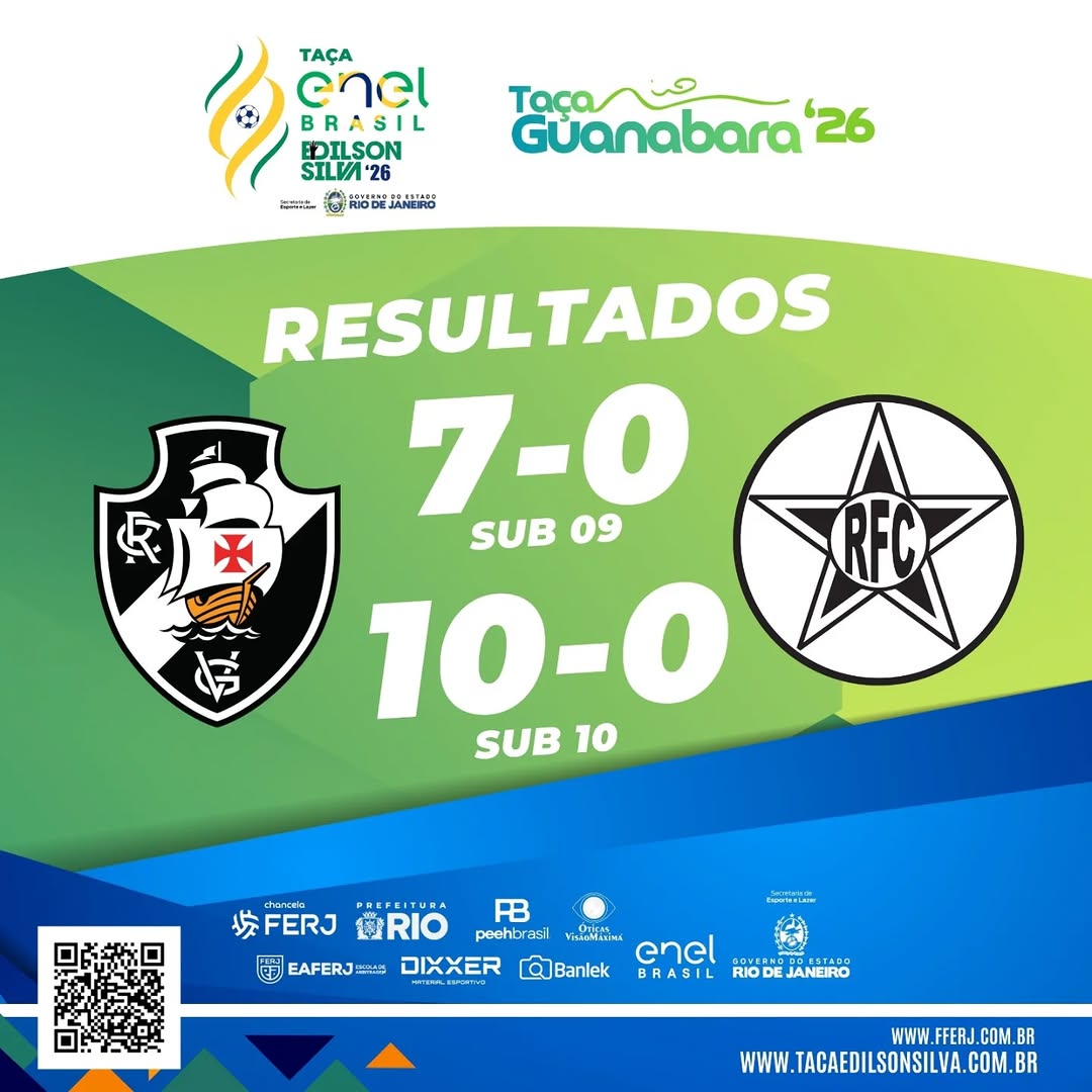 Categorias Sub-09 e Sub-10 do Vasco aplicam goleadas de 7 a 0 e 10 a 0 sobre o Resende na Taça Guanabara