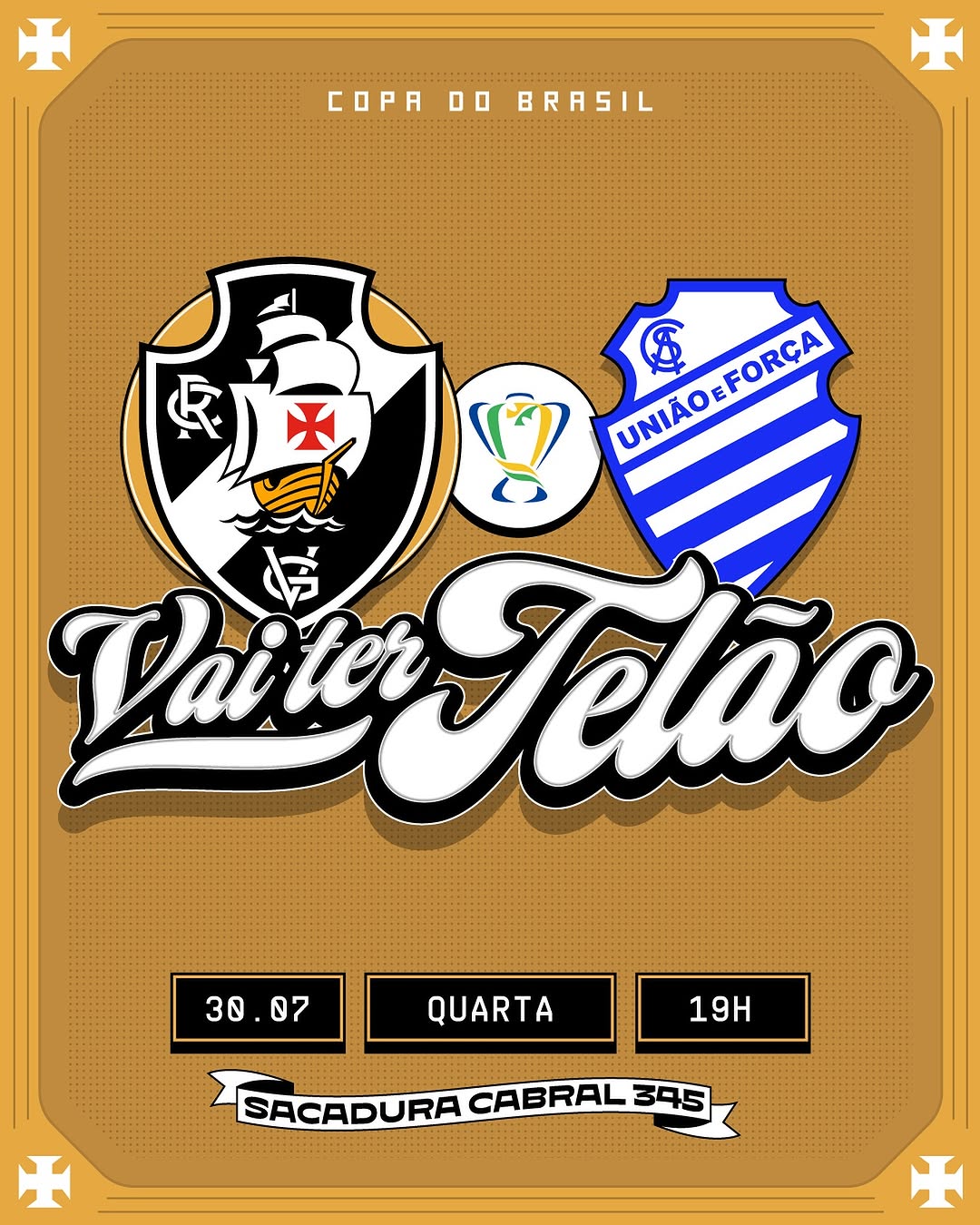 Copa do Brasil AO VIVO na casa onde o Vasco Nasceu! A partir das 17h as portas estarão abertas e, às 19h, é a vez do Gigante da Colina enfrentar o CSA!