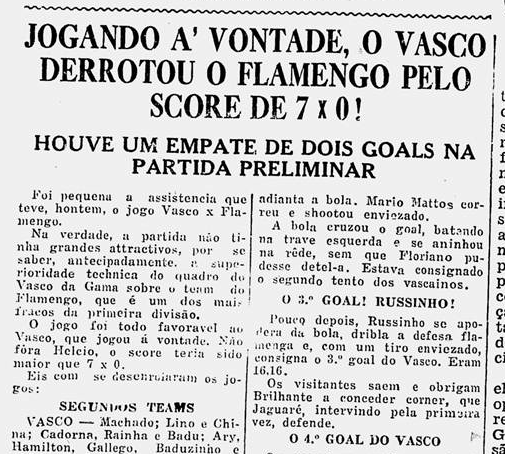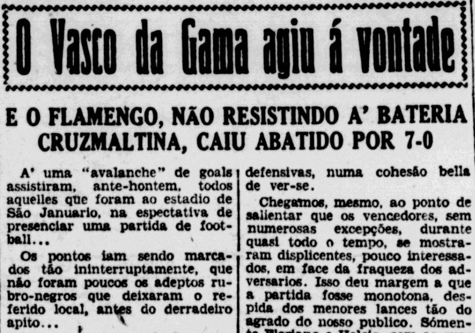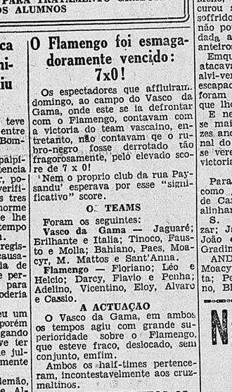 As derrotas do Flamengo para o Vasco estavam se tornando cada vez mais frequentes, com o time cruzmaltino vencendo todos os seus 8 jogos oficiais contra os rubro-negros entre 1928 e 1931. Essa goleada histórica recebeu, nos jornais da época, um destaque que hoje seria considerado modesto.