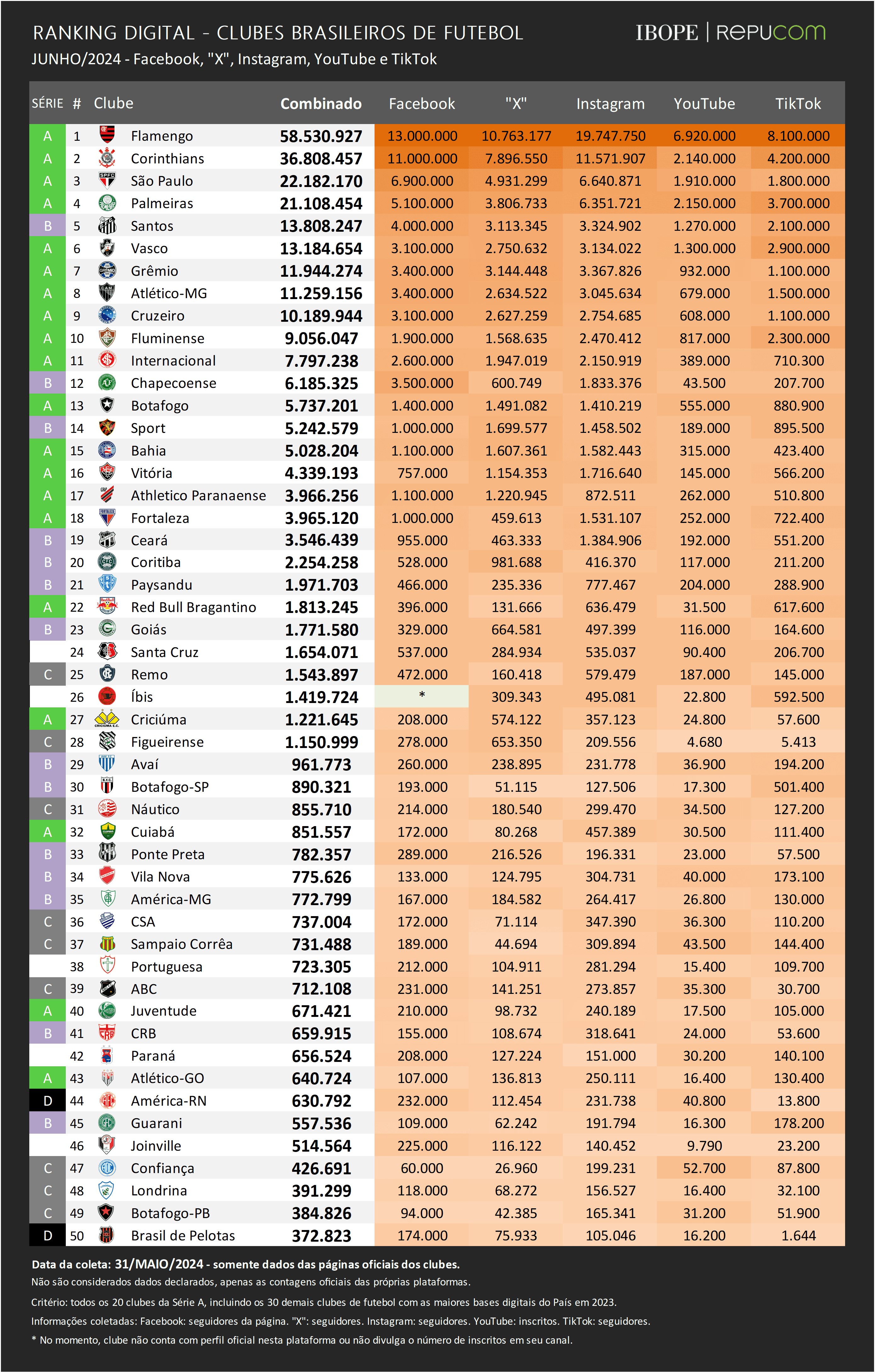 Fonte: IBOPE Repucom – Ranking digital dos times brasileiros