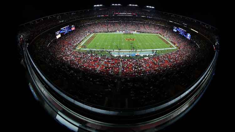 Vista do Northwest Stadium durante jogo entre Commanders e Seahawks, pela NFL – Foto: Scott Taetsch/Getty Images