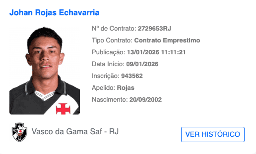 Podcast Cruzmaltino @PodCruzmaltino LIBERADO PARA JOGAR! Johan Rojas está oficialmente registrado no BID da CBF e já pode atuar pelo Vasco nas competições. Agora, cabe à comissão técnica decidir quando o colombiano fará sua estreia com a camisa cruzmaltina. A expectativa é grande para vê-lo em campo.