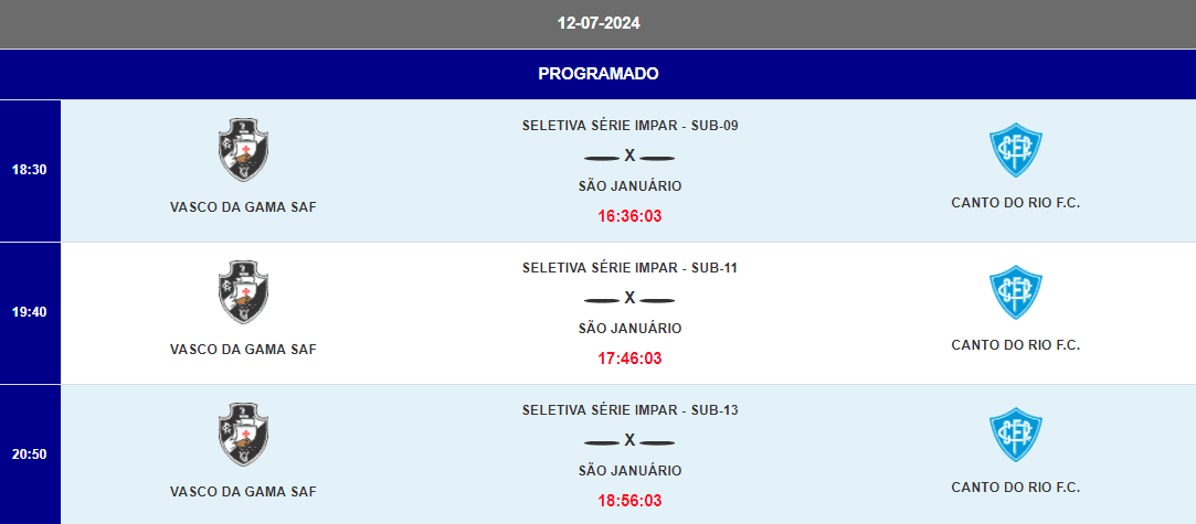 • Próximos Jogos do Vasco